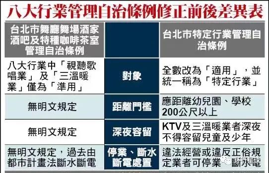 這些行業因服務可能涉及色情,因此在申請營業許可的制度上有特殊的政策,在對營業安全和未成年人保護等等方面要求會非常嚴格。