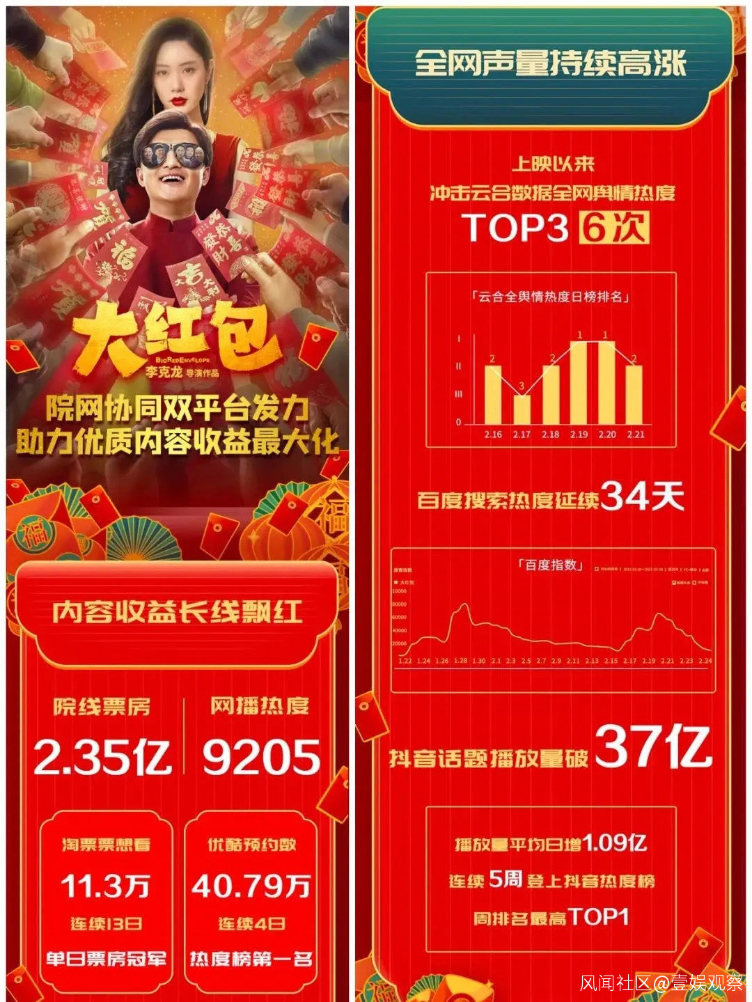 今年春節檔,阿里文娛電影業務圍繞《大紅包》等影片推出的院網協同模式,能夠通過線上線下發行聯動更廣泛地觸達受眾羣體,同時也極大程度地延長院線項目的生命週期。在其背後,燈塔專業版對於院網用户的整體洞察,也為院網協同模式的成熟提供了數據決策依據。
