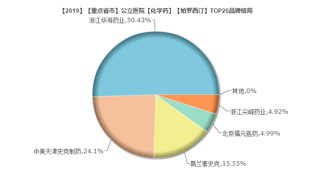 根據米內網數據顯示,2019年GSK原研藥僅佔帕羅西汀市場的15.55%,華海藥業市場份額為50.43%,北京福元、尖峯藥業也分別佔有4.99%和4.92%。
