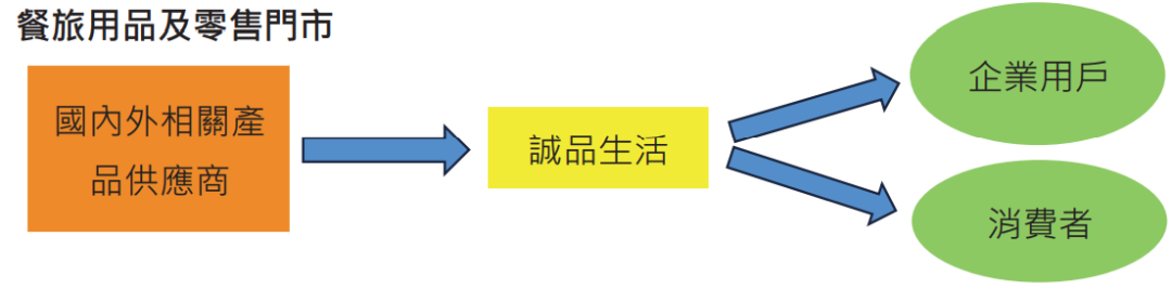 餐旅業務方面,誠品生活致力於引進全球各地品質優良、風格獨特的生活用品、食品,多年來廣為飯店、餐飲業界採用。它除了提供專業廚房、洗衣房設備及旅館用品外,代理引進紅酒、咖啡、礦泉水等提供給下游飯店等企業用户以及直接面向消費者。