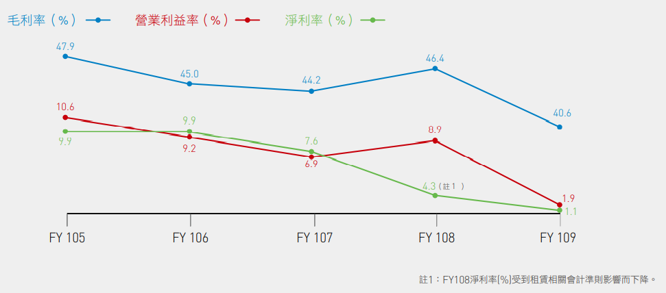 誠品生活2020年度全年毛利率41%,税後純收益率則只有1%。雖然早在多年前誠品生活的營收就遭遇瓶頸,但收益情況如此慘淡也是近年所少見,畢竟它在經過數十年虧損後逐漸摸索出了一條從書店到文創生活的道路。