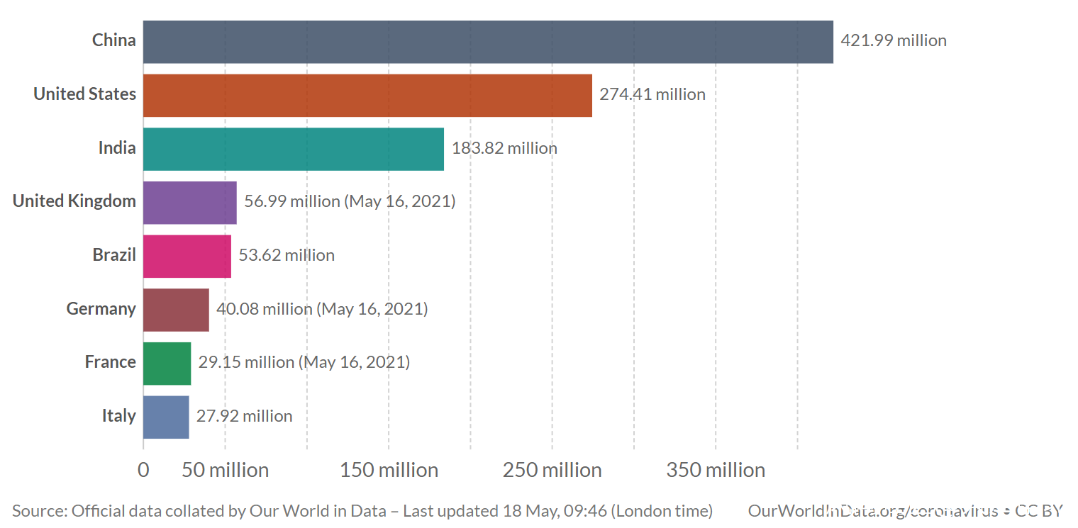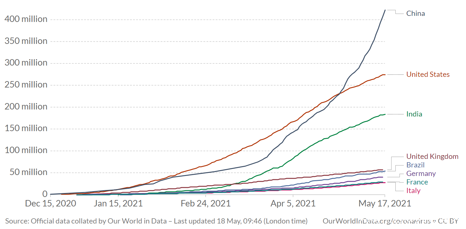 5月18日全球新冠疫情及疫苗接種更新:中國大陸單日接種首破1500萬_風聞