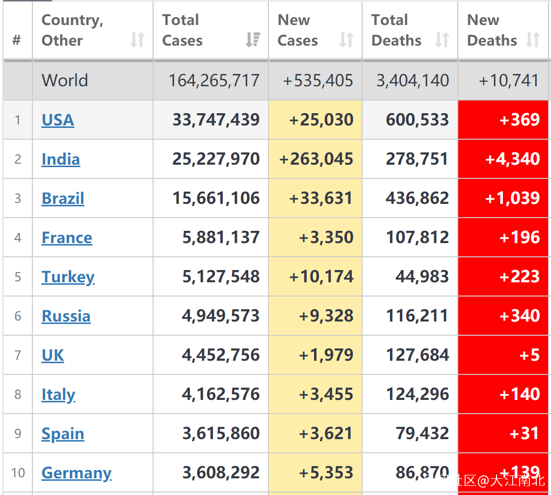 5月17日,全球新增新冠確診53.5萬例;累計確診1.643億例;新增病亡1.07萬例;累計病亡340.4萬例。