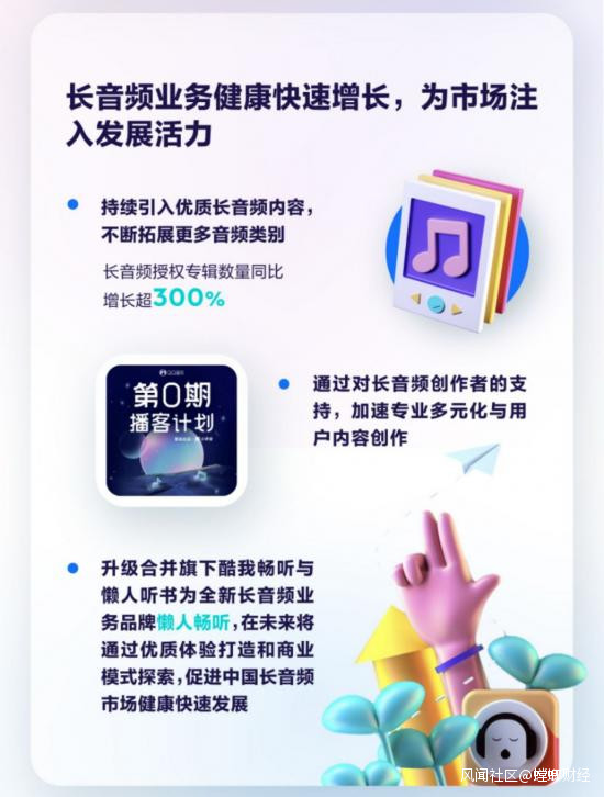 這樣的成績不僅意味着騰訊音樂已成為了長音頻賽道上的領先選手,更意味着長音頻為騰訊音樂帶來了更廣闊的業務增長方向。