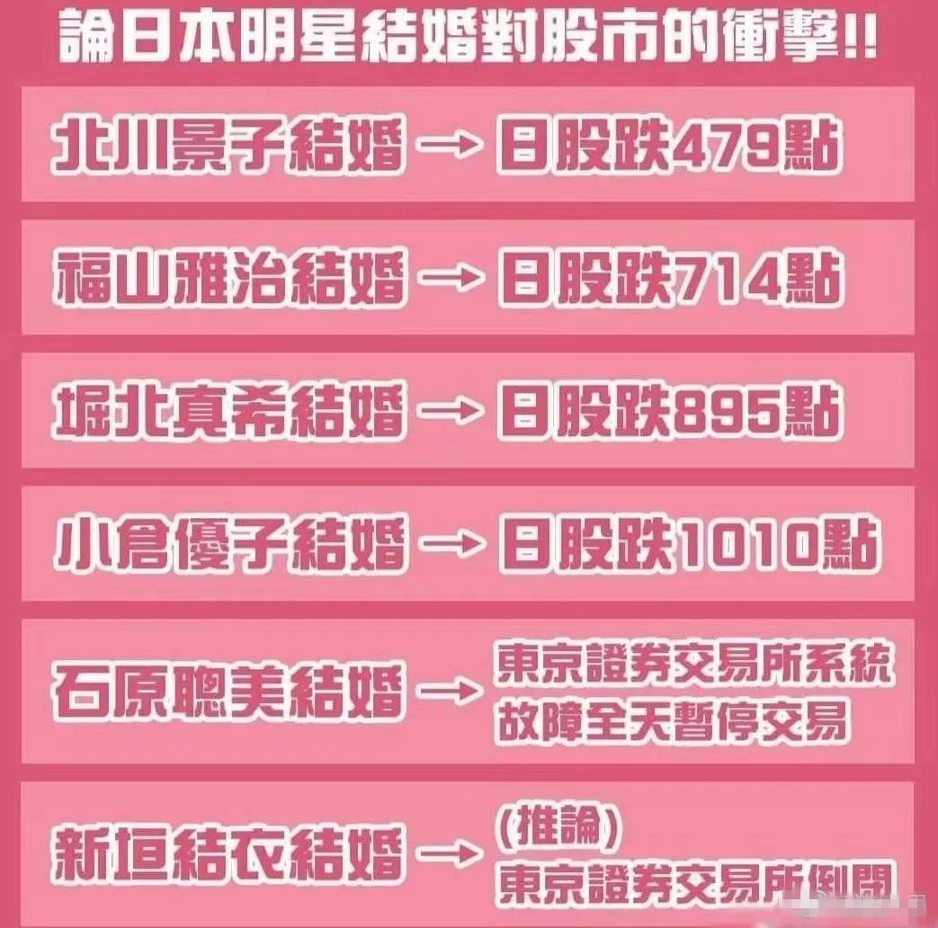 以前網上就流傳過一張預測圖,新垣結衣結婚的話,日經恐怕會迎來最大的衝擊。