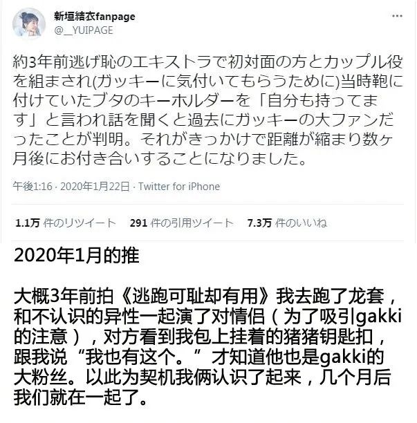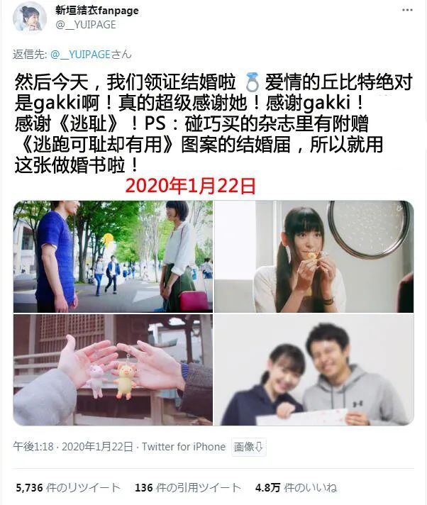 日推上一個新垣結衣粉絲,當年為了追星去跑了《逃跑可恥卻有用》的龍套,結果遇上了同樣超級喜歡gakki的異性,劇裏演了情侶劇外沒過多久也成了真情侶,然後在去年初結婚了,還收到了gakki親筆的祝福簽名。