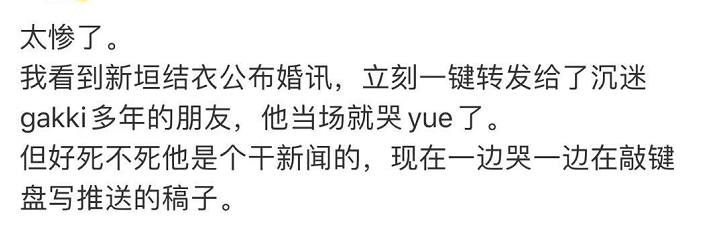 藤井主播讀“新垣結衣星野源結婚”新聞前提醒大家要冷靜,結果讀完了自己比誰都興奮還道歉了。