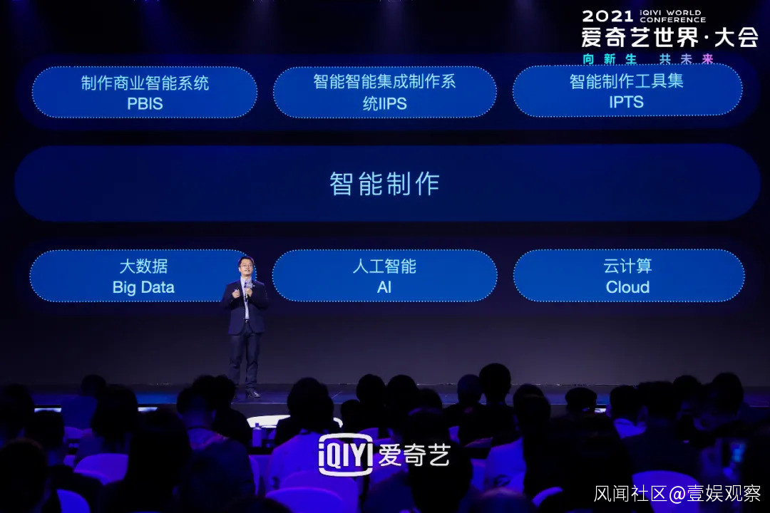 愛奇藝首席技術官&IIG總裁劉文峯在主題演講中,集中展示了目前愛奇藝依託5G、AI、雲計算,推出製作商業智能系統、智能集成製作系統、智能製作工具集,將從項目評估到項目生產流程管理以及一線拍攝等環節,輔助影視內容生產的質量把控和效率管理。