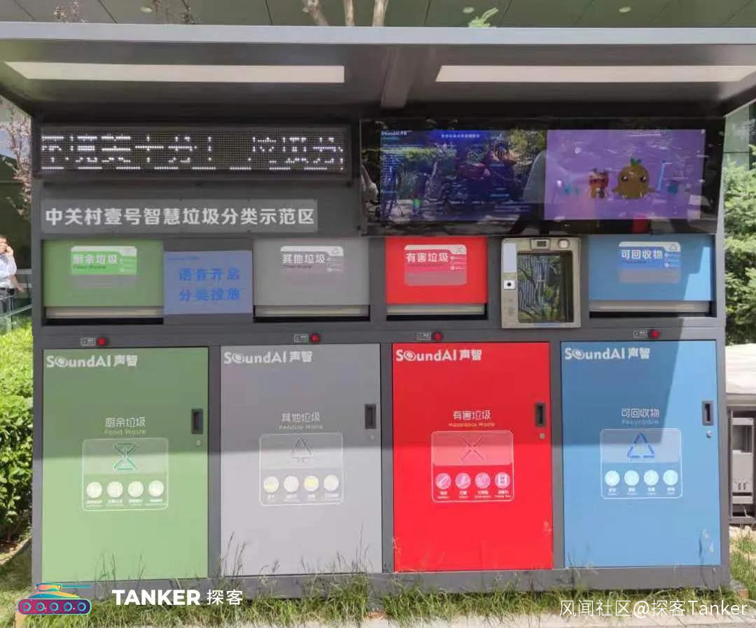 “智能垃圾桶檢測到人路過時會語音提示,當你説出自己要扔的垃圾是什麼,它就會自動打開對應的垃圾桶蓋,無論是可回收垃圾、廚餘垃圾、有害垃圾還是其他垃圾都能識別,不需要人去思考要扔的是什麼垃圾。”開發了智能垃圾桶的聲智科技CTO馮大航告訴「探客Tanker」。