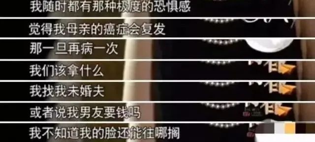 有一天,哥哥告訴她,母親看着很不好,應該是得病了。後來檢查出來是直腸癌。