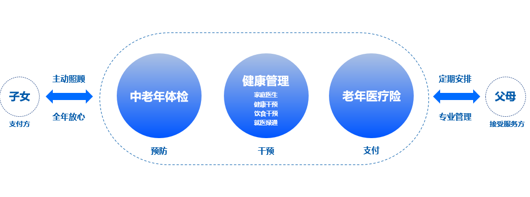 善診以“為80後、90後照顧父母健康”為己任,構建起“子女為健康服務購買方,父母為健康服務享受方”的代際支付轉移模式。圍繞其構建的典型消費場景是,子女通過平台為父母購買覆蓋從體檢預防、健康干預到保險支付各端口,貫穿全年的養老服務。