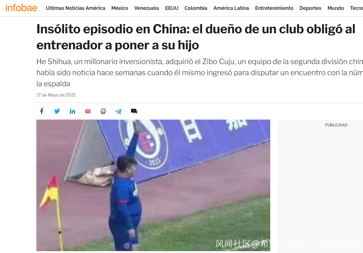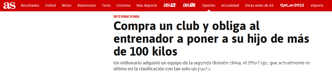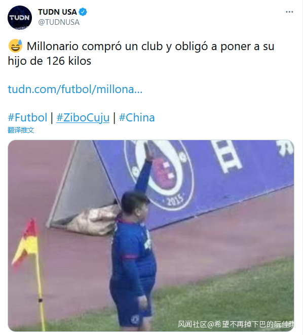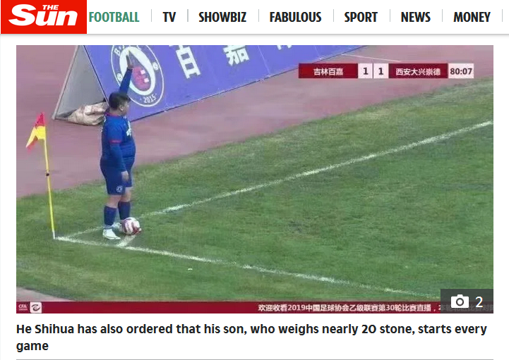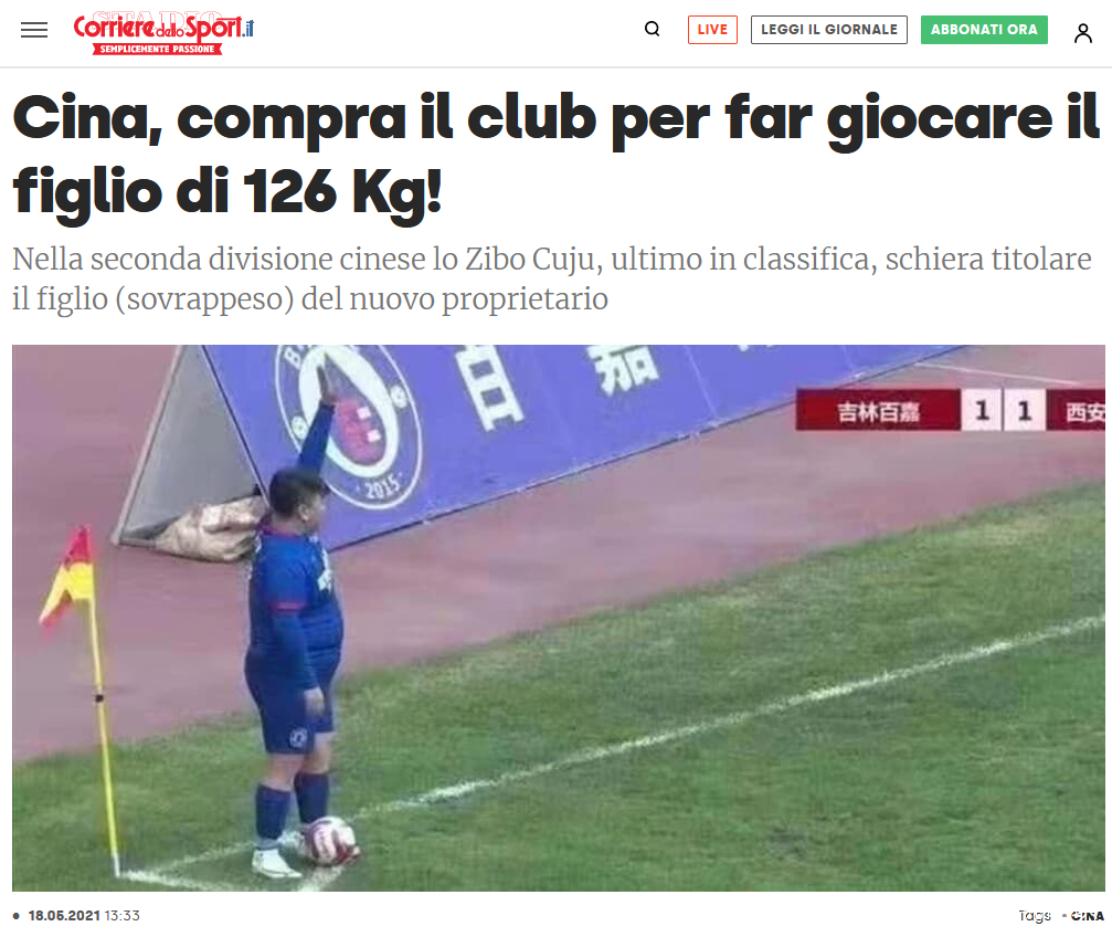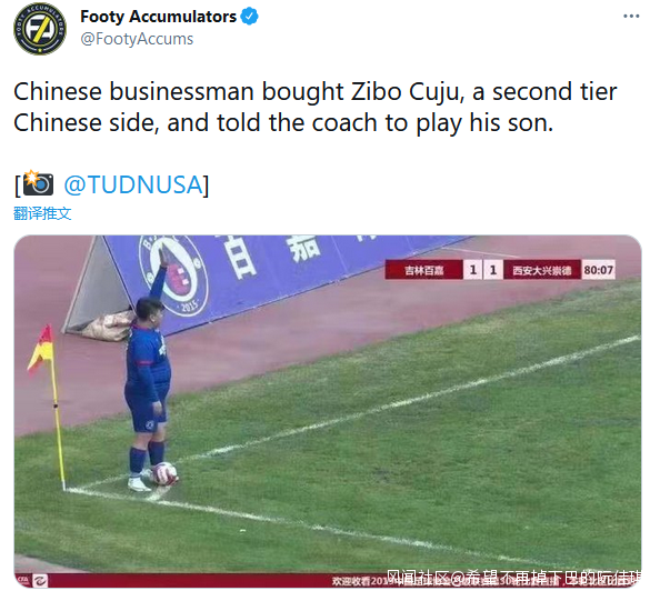 “一名中國商人買下了中國的二線球隊淄博蹴鞠隊,並讓教練安排他的兒子上場”