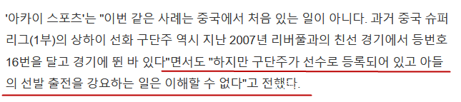 文末還稱不能理解何世華從俱樂部主席登記為球員,還非要讓自己兒子當首發球員的行為。
