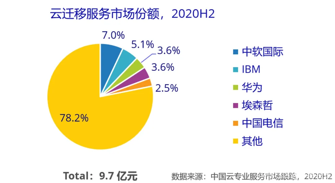中軟國際洞察雲服務的未來發展趨勢,整合公司雲智能業務能力,於2019年初成立中軟國際雲智能業務集團。報告顯示,**2020年下半年中軟國際雲服務業務市場份額同比增長60.6%,其中,中軟國際雲遷移服務業務以及雲開發服務業務雙雙排名市場份額TOP 1。**目前,中軟國際雲智能業務集團已推出多雲管理平台CloudEasy,建設了覆蓋全生命週期的雲智能服務能力,為客户提供雲諮詢、雲遷移、雲管理服務,幫助企業上好雲、用好雲、管好雲。中軟國際不僅全面提供雲智能服務,還建設了智慧城市、智慧園區、數字辦公、DevOps平台、混合雲管理等解決方案,助力政企客户數字化轉型。
