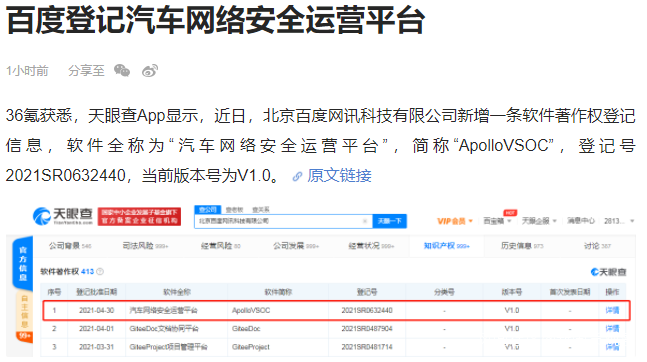 百度登記汽車網絡安全運營平台。