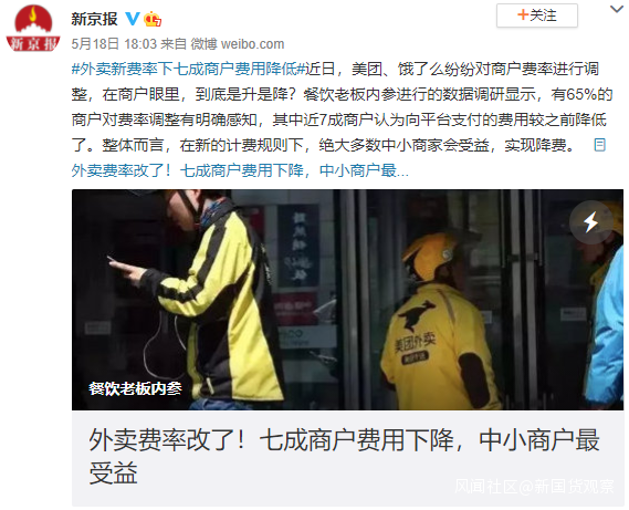 新國貨觀察丨美團、餓了麼紛紛對商户費率進行調整_風聞