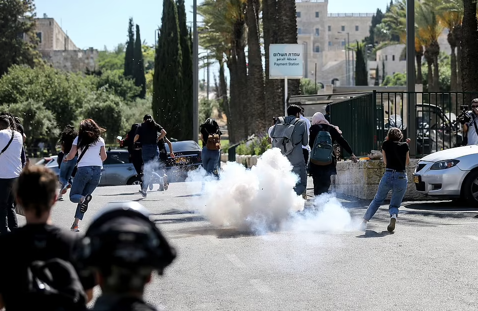 巴勒斯坦抗議者被催淚彈與震撼彈驅逐 圖源:路透社
