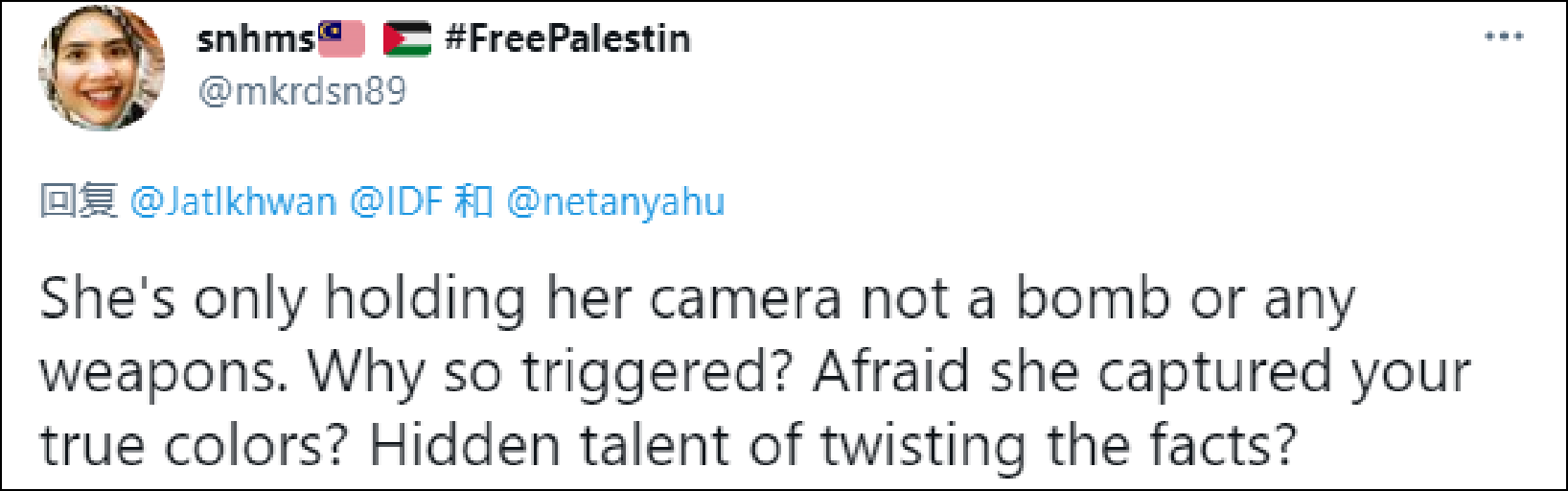 “她只是拿着相機,又不是炸彈或武器,為什麼要如此應對?害怕她暴露你們的本性嗎?”