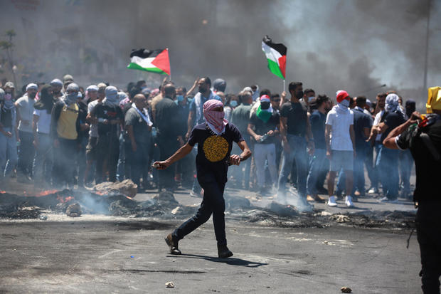 巴勒斯坦民眾抗議活動現場畫面 圖源:CBS News