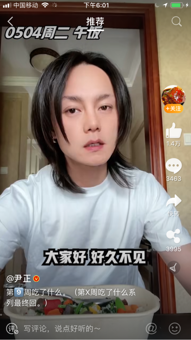 而“尹正食譜” 能在迅速走紅,且能蔓延到各大社交平台,在於一個男藝人能拋棄任何妝發,隨性地一頭長髮就開始分享的真城,也在於他營業的認真程度。