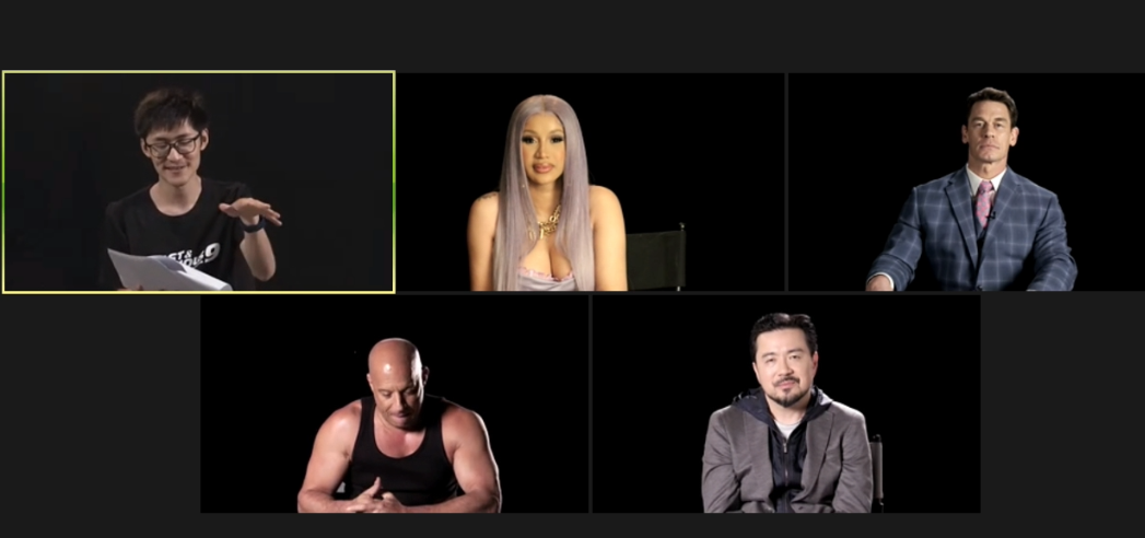 北京時間5月18日上午11時,環球影業為即將在中國內地上映的《速激9》舉辦線上發佈會,美籍華裔導演林詣彬,製片人兼主演範·迪塞爾,主演約翰·塞納和卡迪·B集體連麥,不能參與直播的查理茲·塞隆也提前錄好了問候視頻。