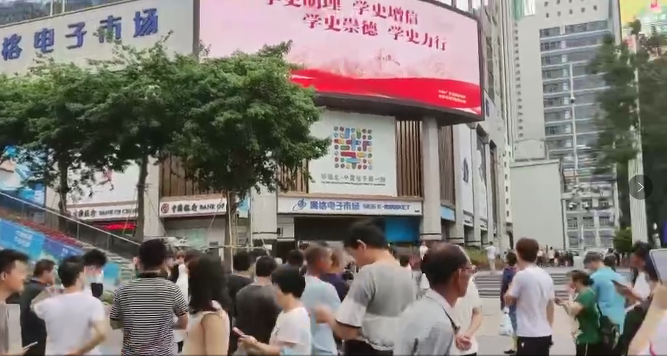 5月18日下午,有網友拍攝短視頻稱,深圳華強北的地標建築賽格廣場發生晃動。視頻顯示,很多人神情慌張,從大廈湧出,邊跑邊朝後看。