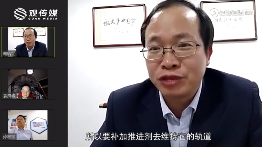 **袁嵐峯:**我來向觀眾解釋一下,霍爾推進劑它是用電推進就是説用一個很高的電場,把離子帶電的離子加速然後噴出去,這樣的話你達到的速度可以遠遠的超過化學反應的一個推進劑。化學推進劑噴出來的速度一般都是幾公里每秒,但是霍爾推進劑它是可以達到多少?有上百公里每秒嗎還是多少?