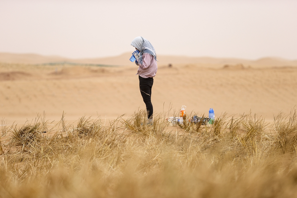曾在騰格裏沙漠工作的治沙工人孫銀霞説,他們當時在沙漠裏植樹的時候,每天最少要喝掉5升水,也就是普通人日常收入水分的2倍,不然就可能中暑。