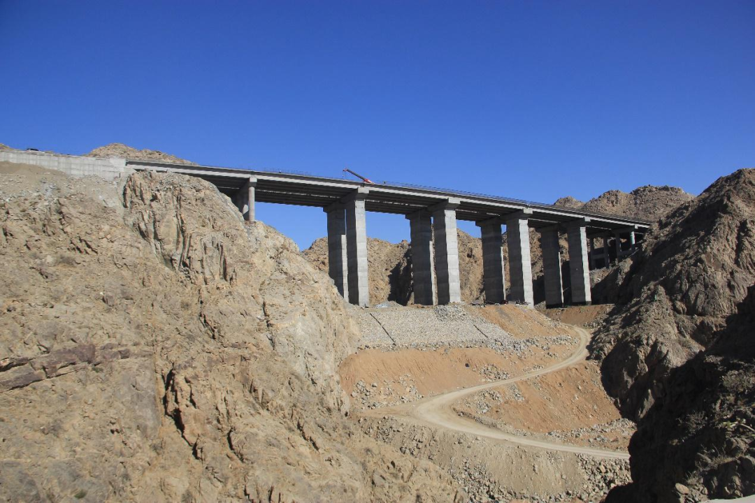 温都爾浩1號橋長度雖然只有216米,6根墩柱卻有不同的高度,最高的墩柱60.1米,最短的墩柱要從距離地表23米高的陡坡上進行施工,這些都是內蒙古公路工程建設上的首例。