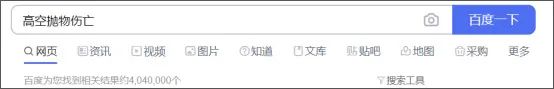 百度上高空拋物傷亡的相關新聞有4040000個。