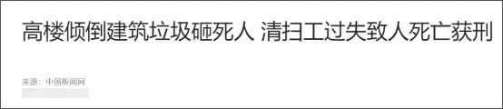 中國新聞網《高樓傾倒建築垃圾砸死人 清掃工過失致人死亡獲刑》