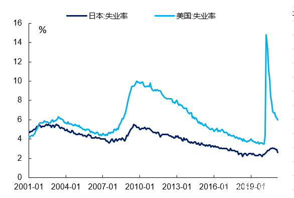 金融危機期間,日本失業率最高達到5.5%,也遠低於美國10%的水平。