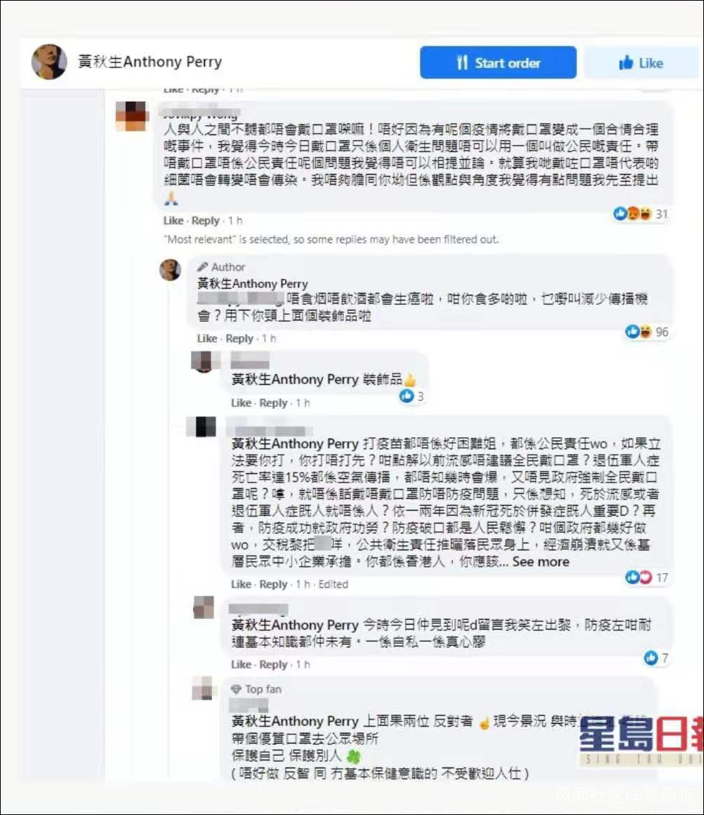 在與網友激辯後,黃秋生刪除了這條臉書貼文。目前打開其臉書主頁,最新的帖子發表於3月7日。