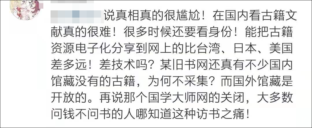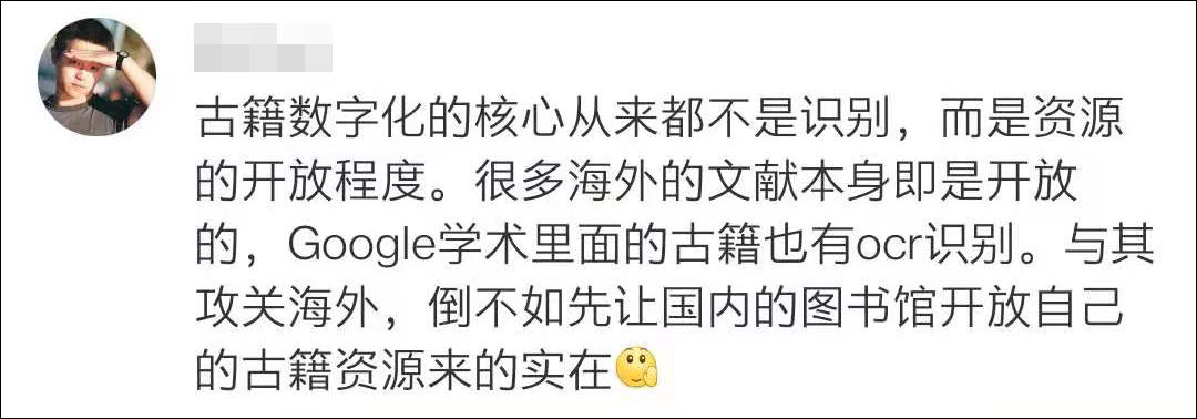 “很多海外的文獻本身即是開放的……與其攻關海外,倒不如先讓國內的圖書館開放自己的古籍資源來的實在。”