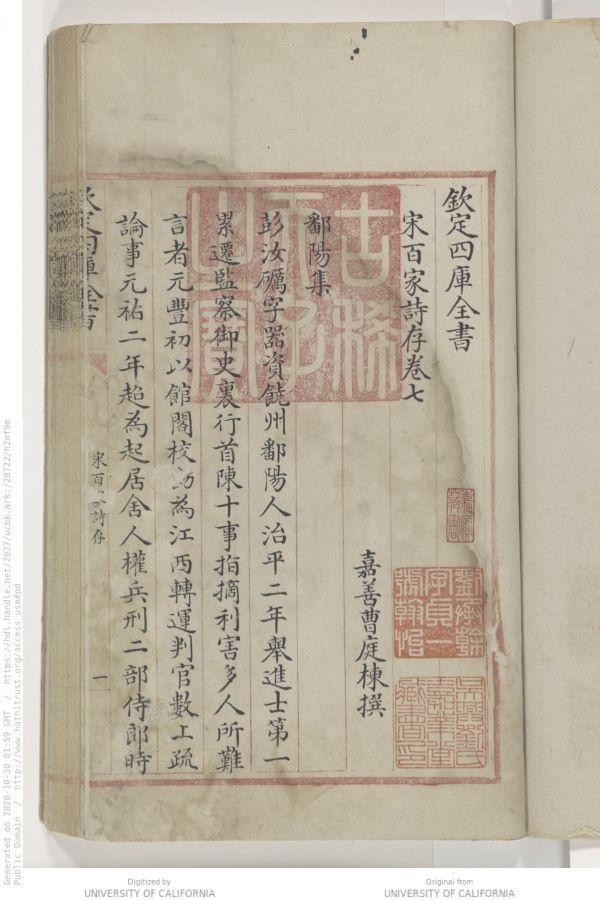 首批數字化的20萬頁古籍中,包含40餘種珍貴宋元刻本、寫本,如宋刻本《後村居士集》、北宋《金粟山大藏經》寫本;明清至民國時期著名學者錢謙益、翁方綱、王韜的抄本、稿本;著名藏書樓嘉業堂、密韻樓的抄本,還有命運多舛的清文瀾閣《四庫全書》零本等,很多都是消失多年後重回公眾視線的珍本。