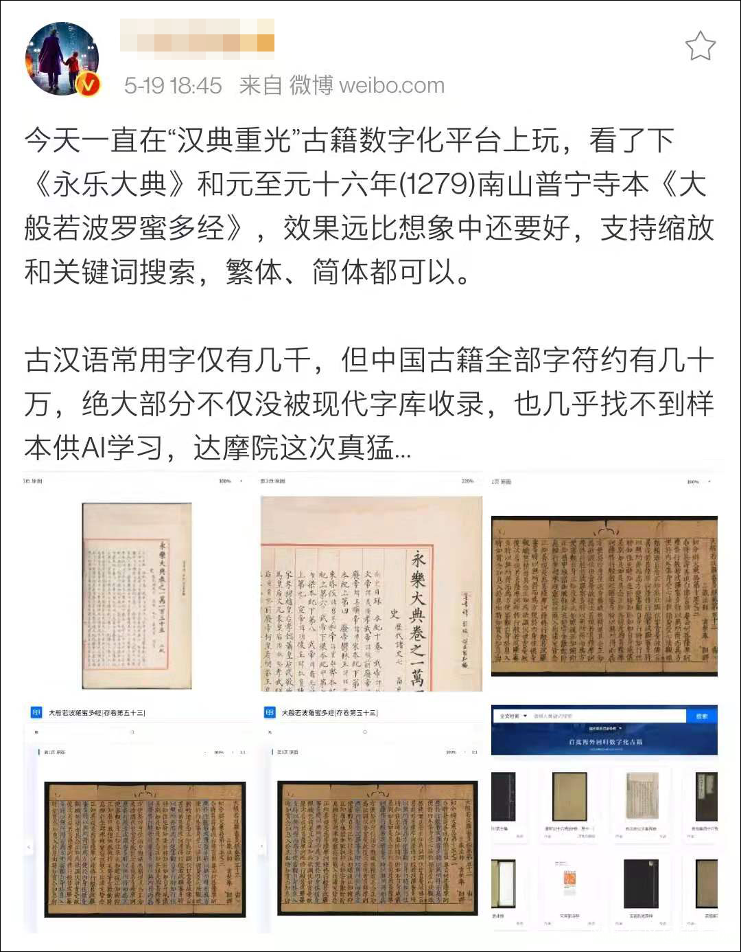 海外古籍數字化迴歸的消息,讓一眾網友拍手叫好;但對於阿里達摩院開發的“漢典重光”古籍數字化平台,網友們卻態度不一……