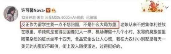 辱罵祖國、向國外下跪的舔狗留學生許X馨,改名回國了_風聞