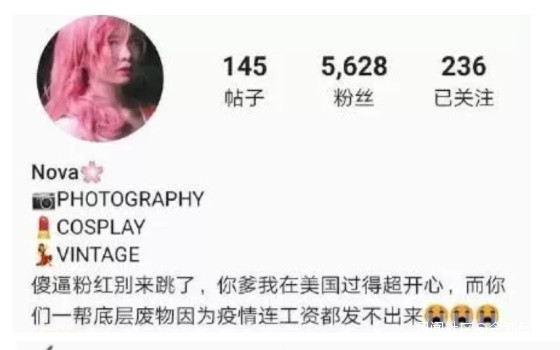在外國社交媒體ins上,她語言更是惡毒到令人髮指…
