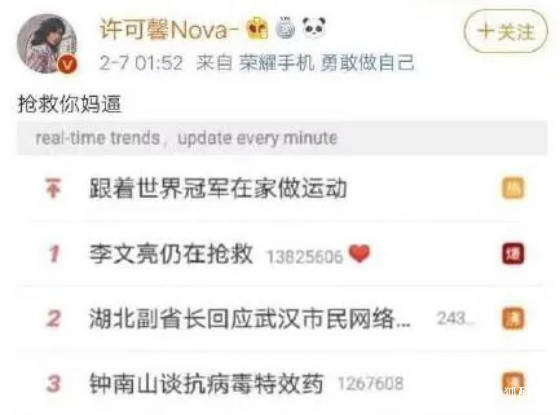 當醫護人員拼命搶救李文亮醫生的那個深夜,許可馨在微博公然開罵: