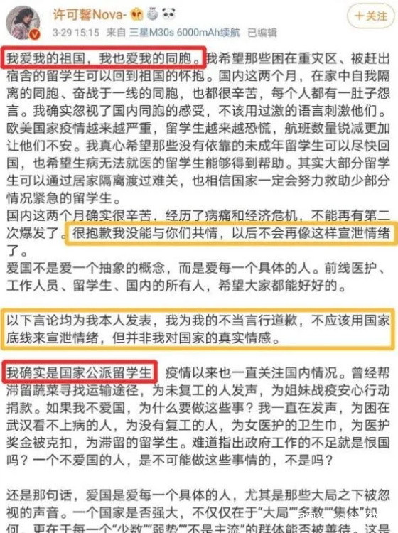 可能是發現了全國人民的聲討,許可馨這才假模假樣的在微博上寫了一封道歉信。