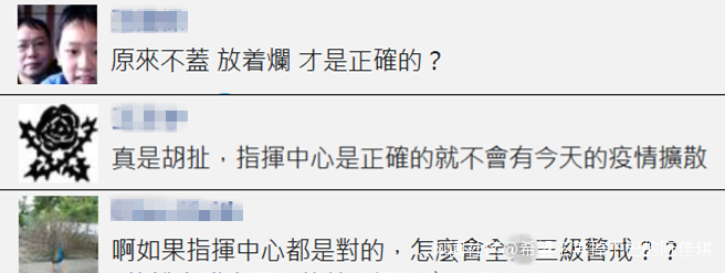 這話讓台灣網友坐不住了,“短短几天全台升至三級警戒,還説得出來指揮中心是正確的?臉呢?”