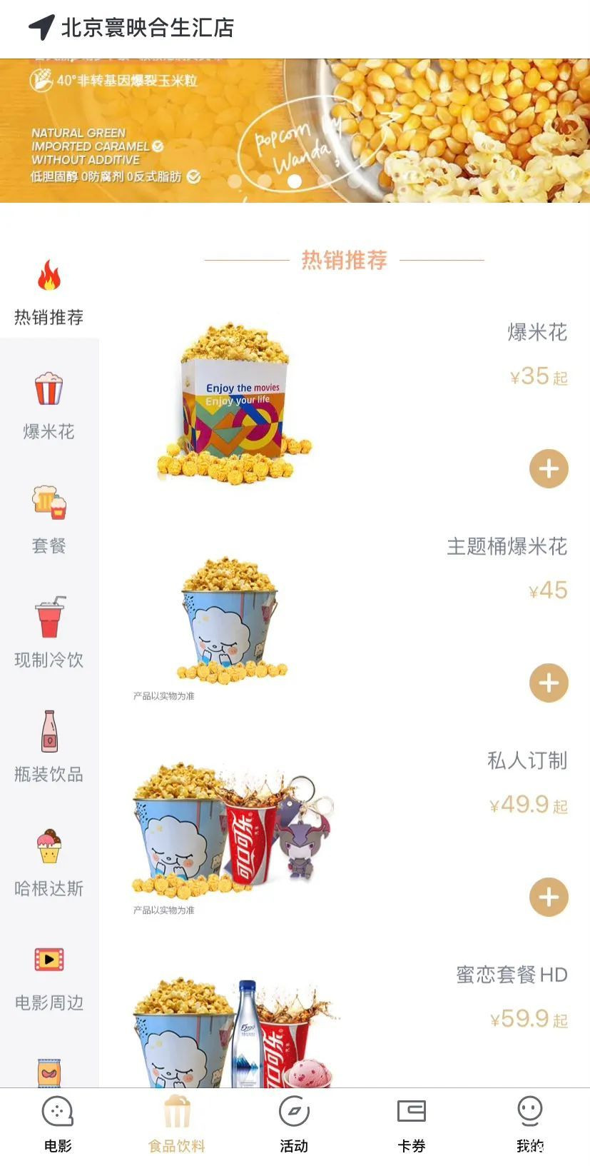 圖為萬達電影app食品飲料界面