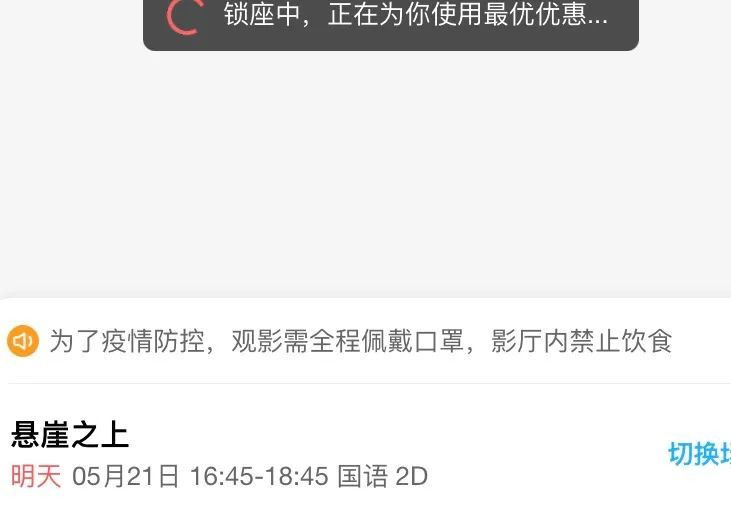 圖為線上購買電影票時出現的提示