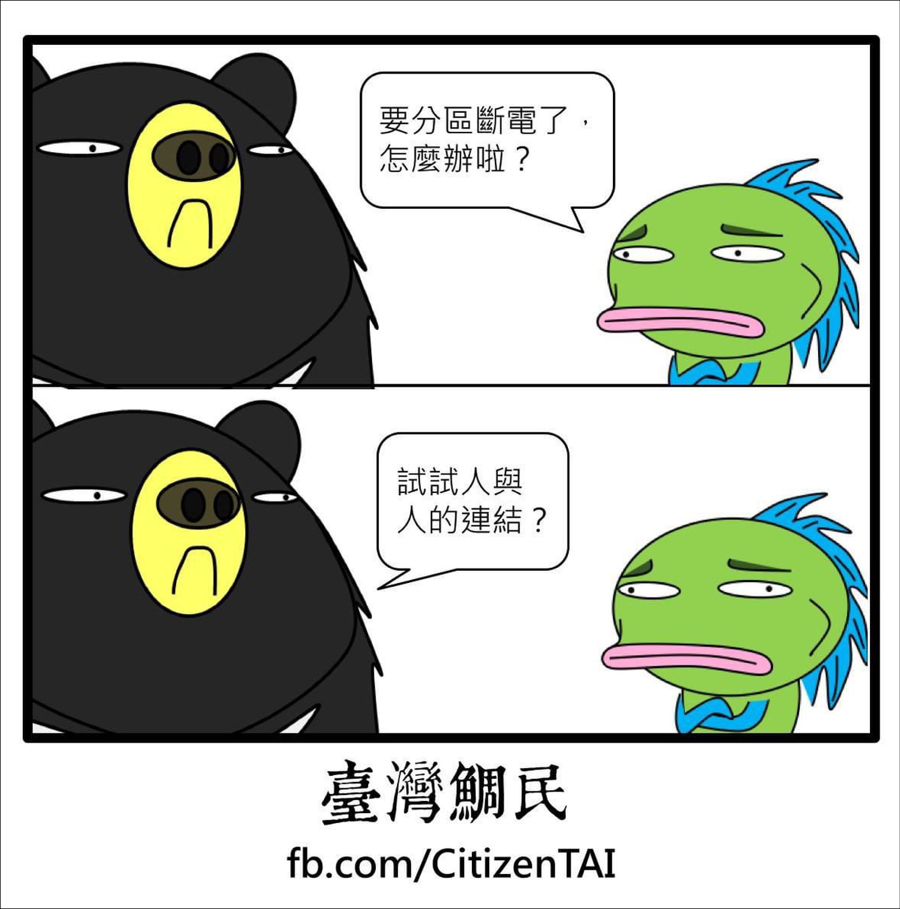 再比如,台灣分區斷電後,夜晚黑燈瞎火怎麼辦?可以試試“人與人的連結”。