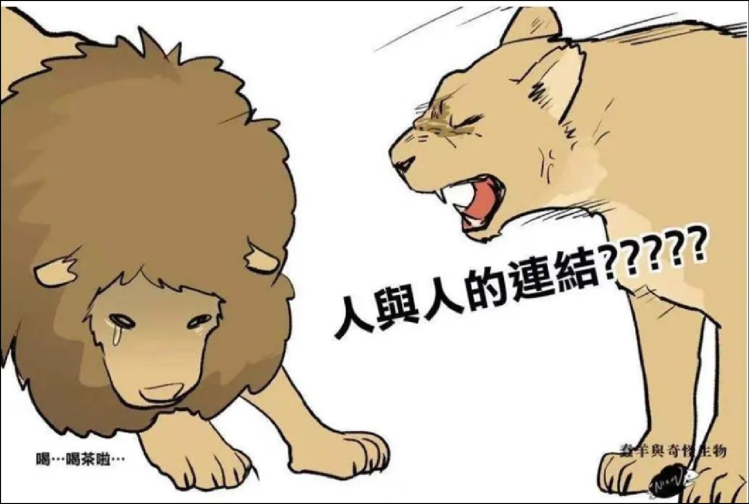 比如,結合上述確診男子的“獅子王”稱號,有了母獅怒斥公獅“與人連結”的梗……