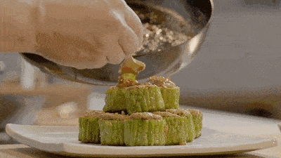 比如梅州客家菜裏最出名的釀,多數説法裏,釀的靈感,來自於餃子。沒有麥子做餃子皮,客家人就在豆腐苦瓜辣椒裏面放餡。