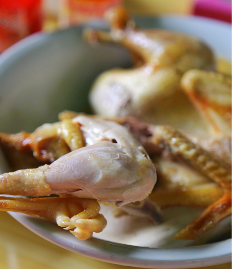 因南遷過程又耗費體力,又要保存鹽和食物,所以鹽焗雞初入口時鹹味是重點,但再嘗幾口,雞的鮮味就開始慢慢地浮現出來。