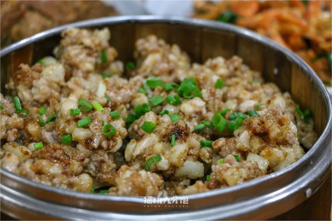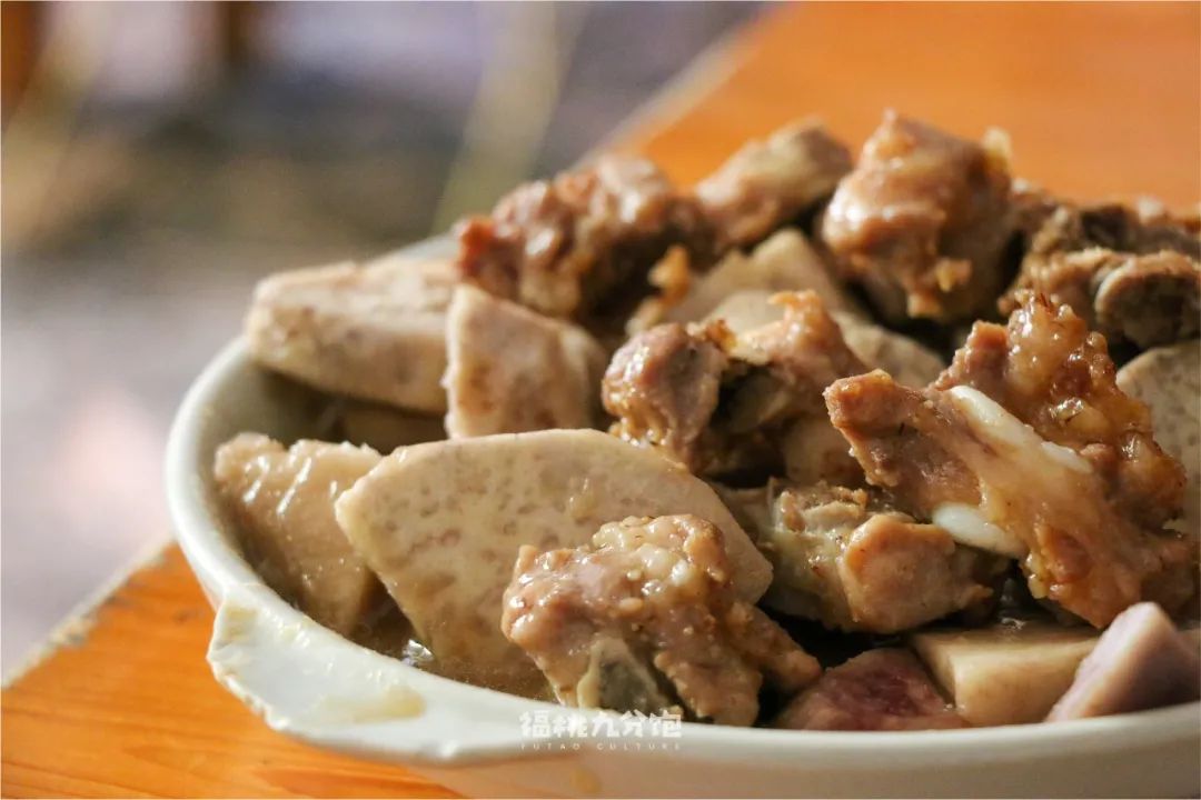 一份芋頭蒸排骨,芋頭粉糯,吸足了排骨肉香,碳水脂肪蛋白質,是客家人的體力來源。