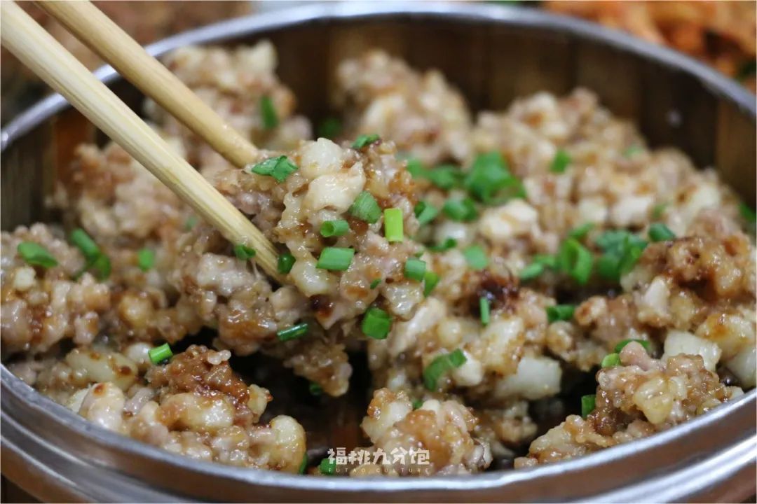 開鍋肉丸是豬肉加入木薯粉、魷魚絲、蝦米、葱白等調味料,捏成大小合適的圓丸子放在竹蒸熟,剛開蓋就伴有一股自然的竹香味,隨後是肉香撲面。