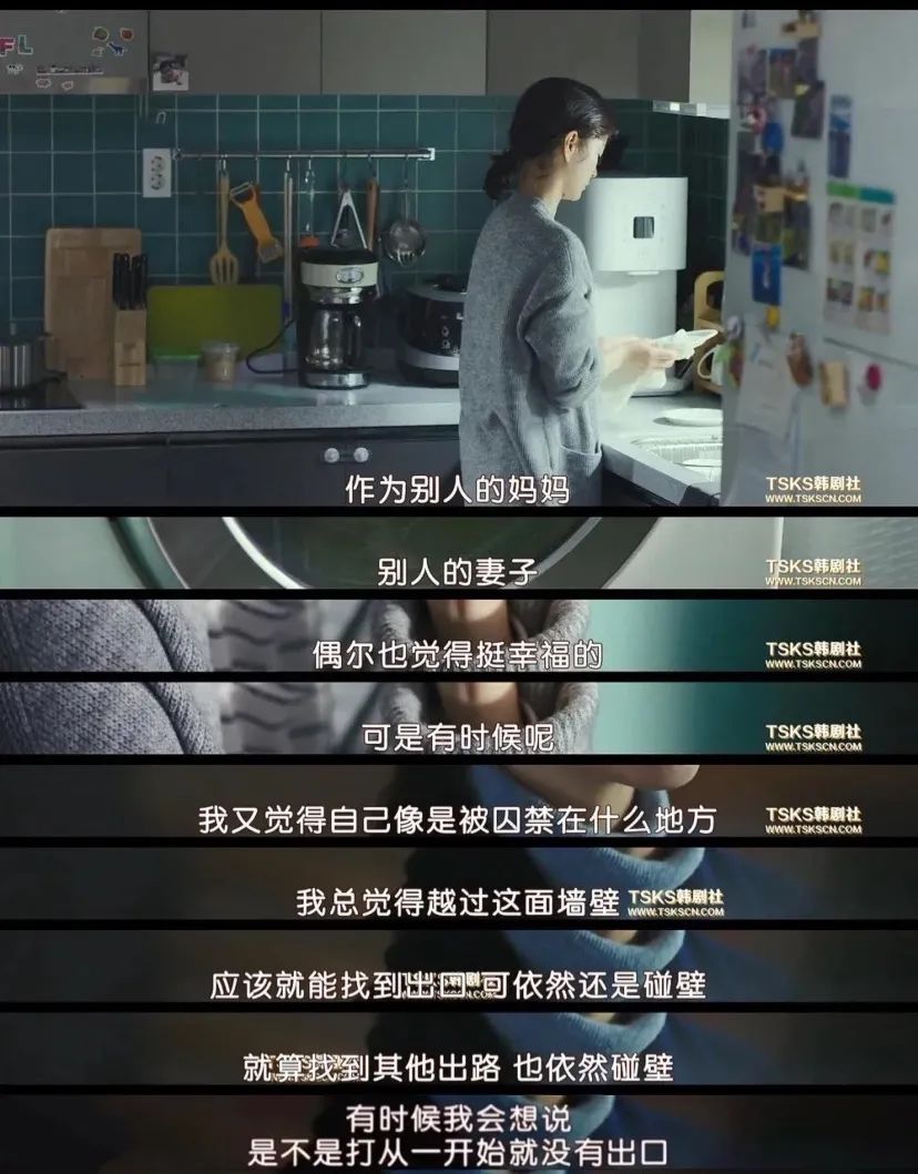 就像三毛説的:“母親的腿上,好似綁着一條無形的鏈子,那一條鏈子的長度,只夠她在廚房和家中走來走去,大門雖然沒有上鎖,她心裏的愛,卻使她心甘情願地把自己鎖了一輩子。”恐怕她們自己也被同化,默許了這種現象,並甘願為此而犧牲。